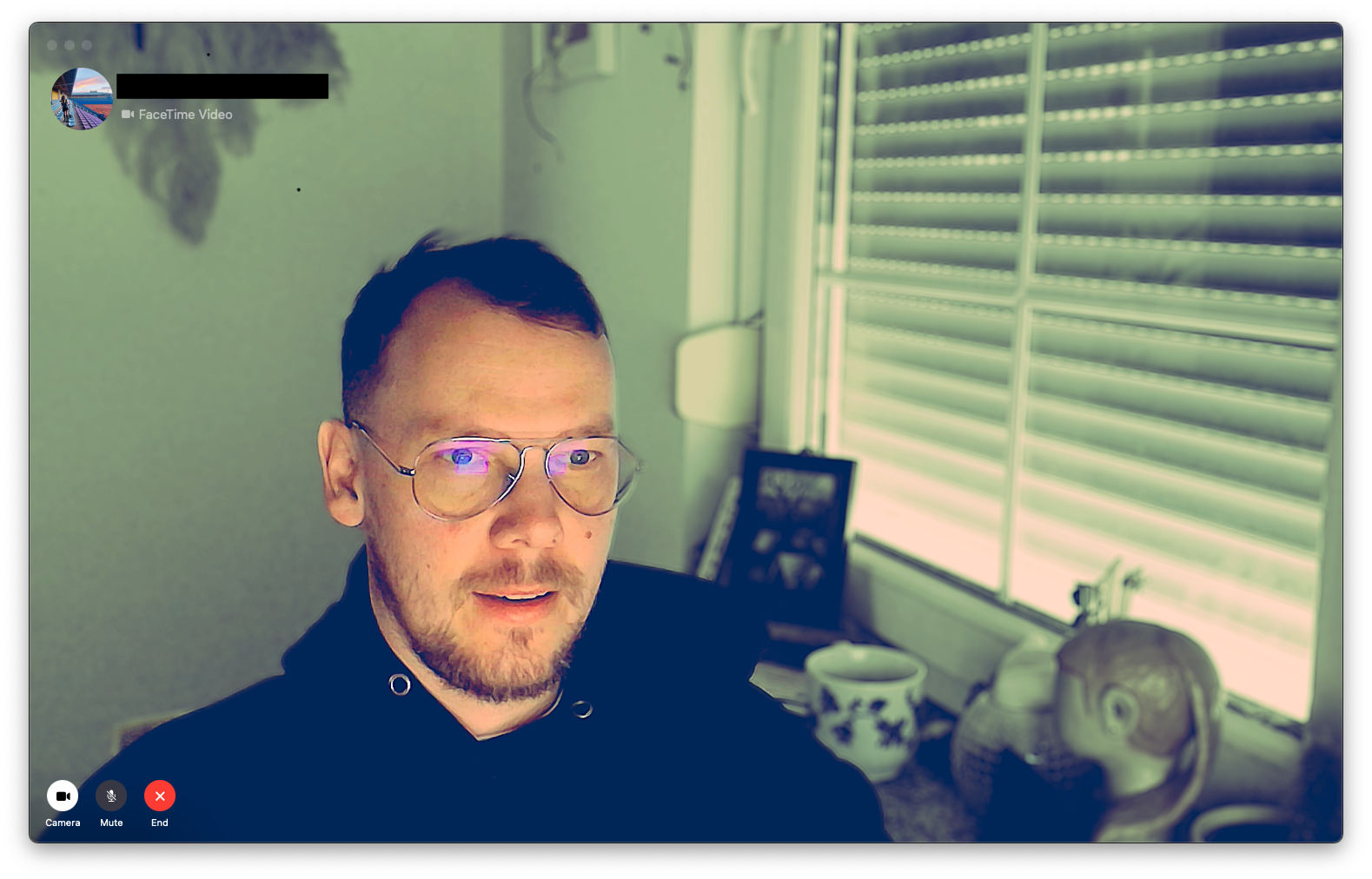 FaceTimeアプリを開いて通話を開始します。接続されたら、Macのカメラフィルターにアクセスできます。